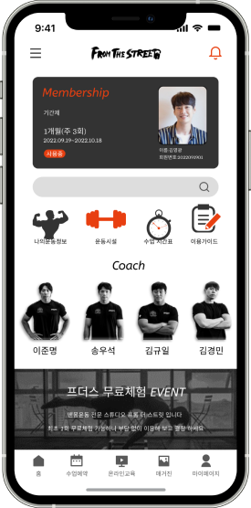 건강함을 더하는 프롬더스트릿의 피트니스 컨텐츠 서비스입니다.